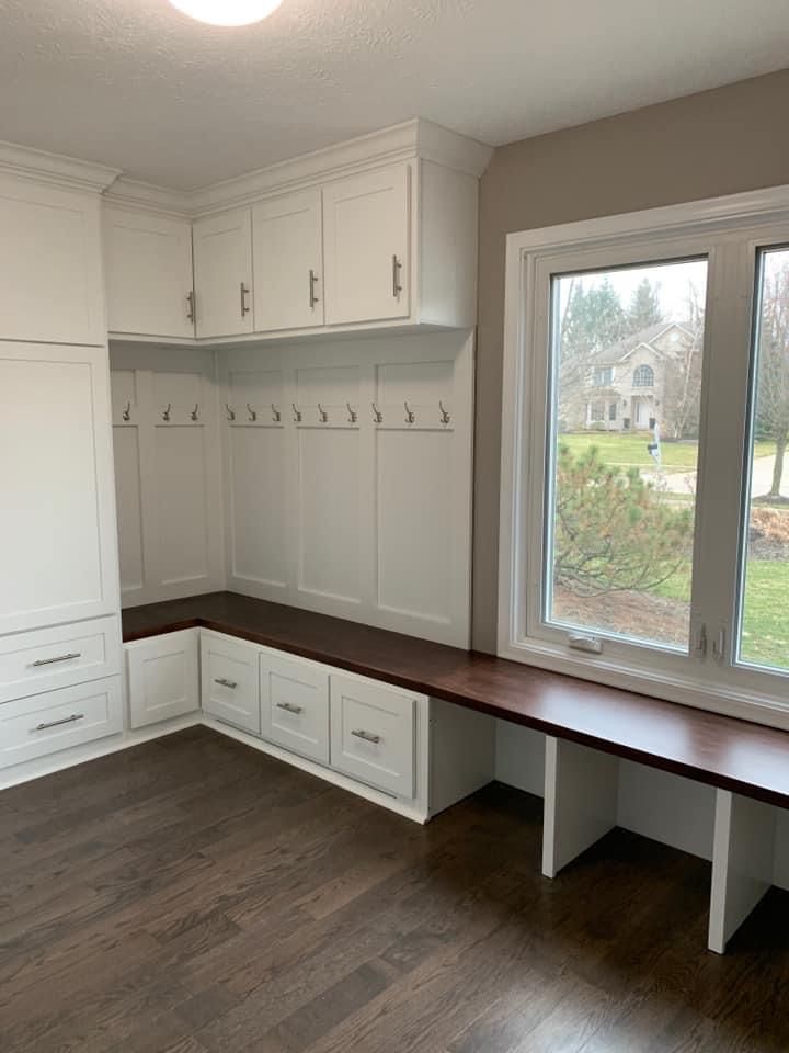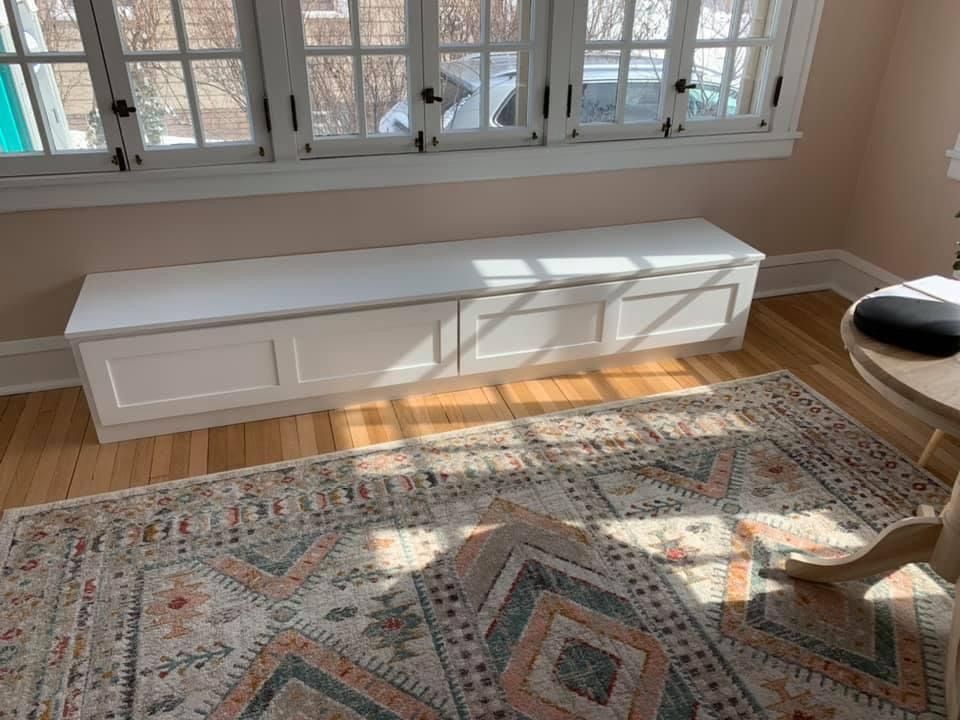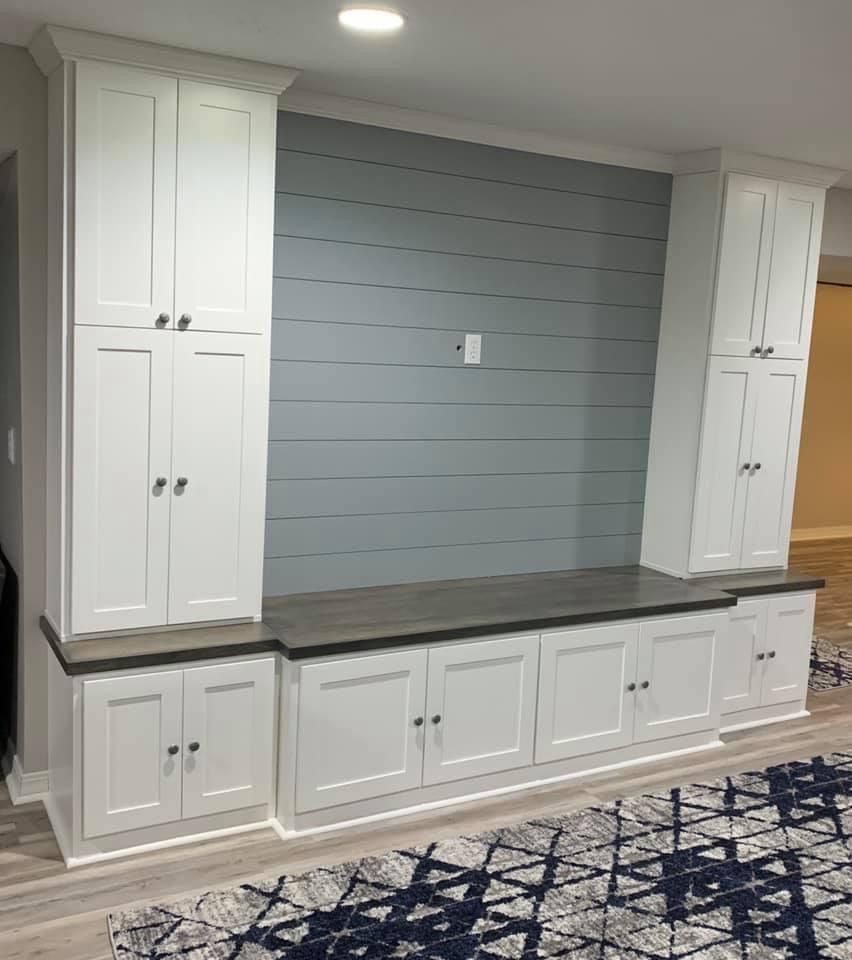 - Family Rooms – Built-in shelving, storage benches, and cabinetry to match your style
